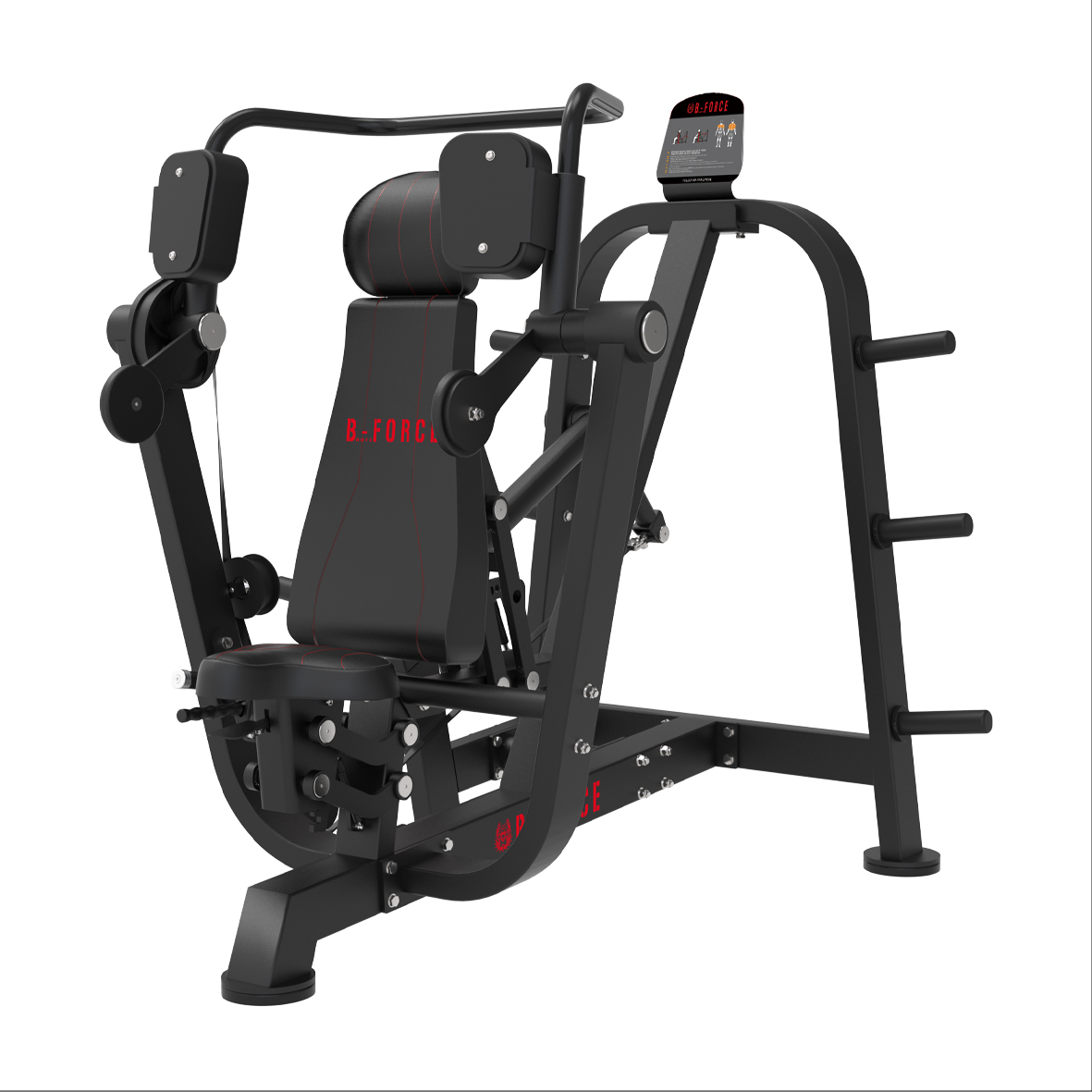 Super Lat Machine Plate Loaded Brute-Force. Optimaliseer Je Lateral Training met Olympische Schijven en Biomechanische Precisie. De Super Lat Machine is ontworpen om de laterals diep te trainen met een biomechanische overbrenging. Dit toestel biedt de voordelen van trainen met losse gewichten, maar met verbeterde veiligheid en precisie, wat de kans op blessures aanzienlijk vermindert.